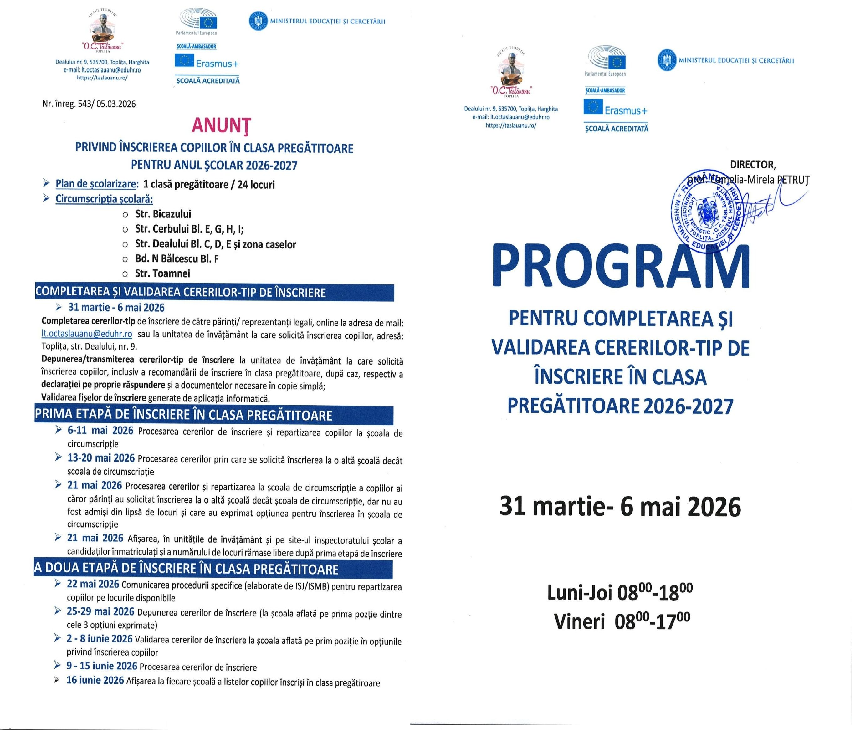 "Scoala noastra promoveaza identificarea si dezvoltarea aptitudinilor elevului si realizeaza educatia pentru colaborare si lucru in echipa; oferim fiecarui tanar sansa de a-si construi viitorul, de a se adapta unei societati dinamice".